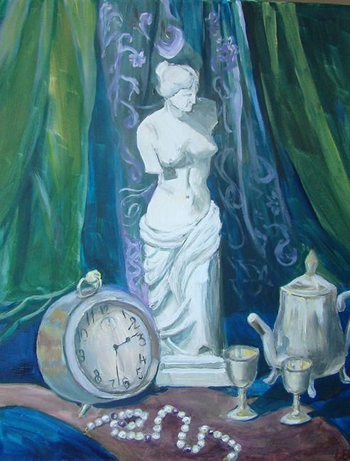 ''Klusā daba ar pulksteni''